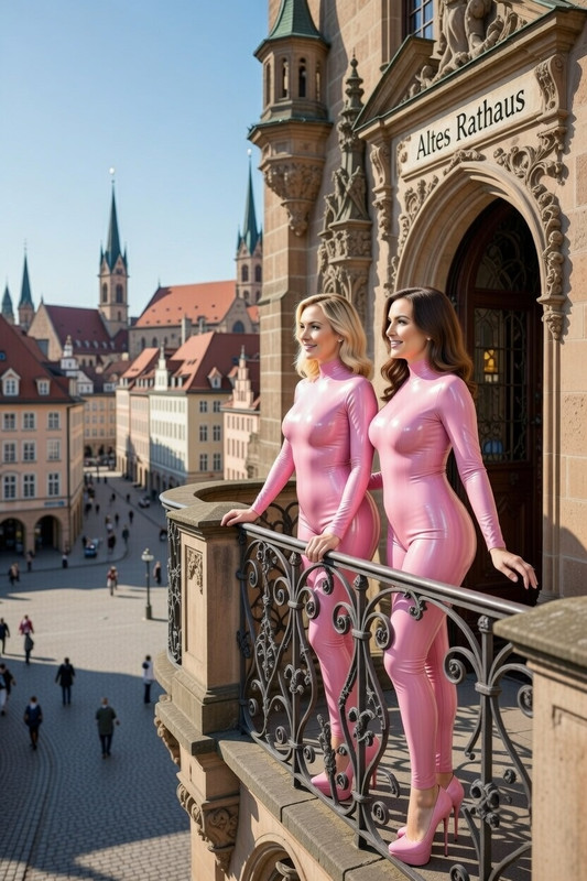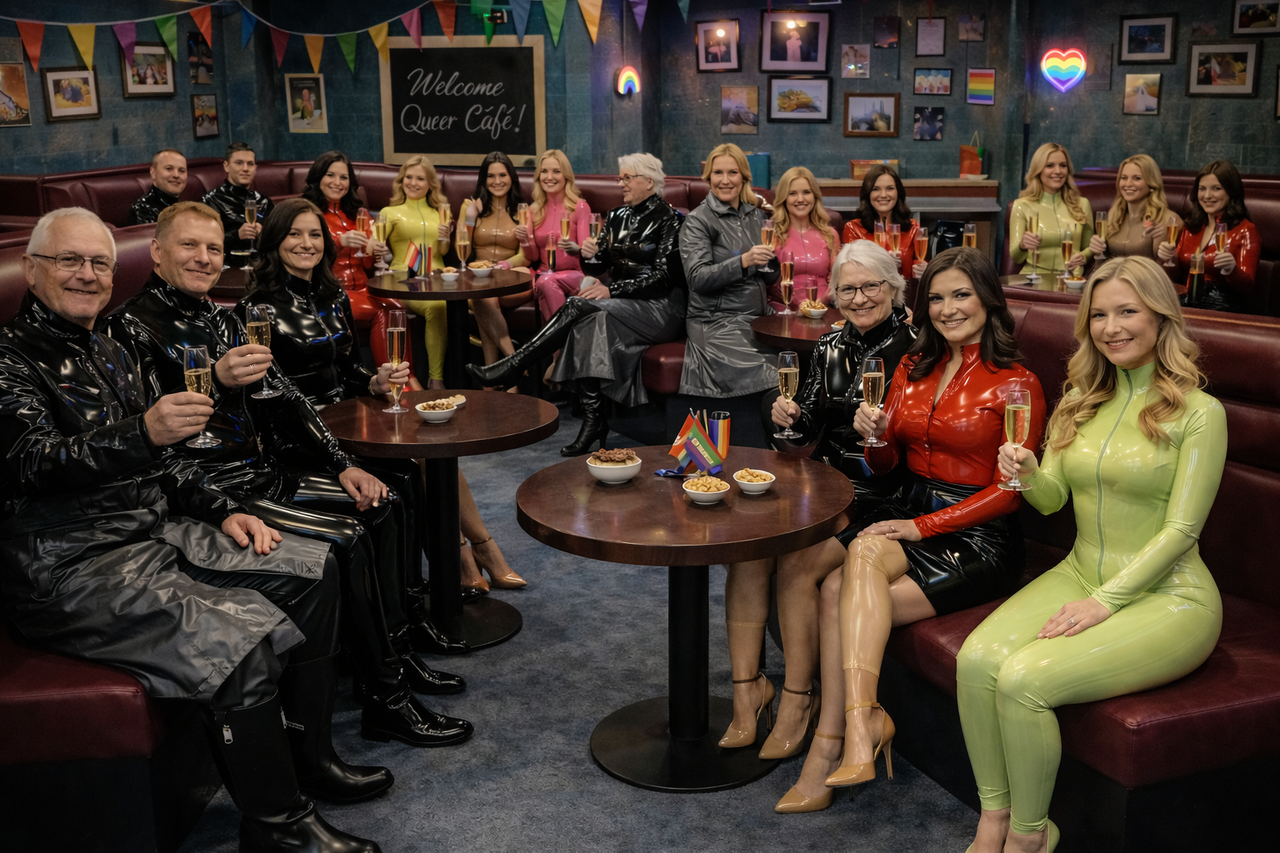 Es ist spät, Glorias Küche ist stiller als sonst. Nur das Summen des Kühlschranks und das leise Klirren von Porzellan. Gloria sitzt am Küchentisch, noch immer im hellgrünen Latexcatsuit, Miriam ihr gegenüber, heute wieder vollständig in transparentem Latex – Top, Handschuhe, Strümpfe, sogar die Hotpants. Das Material schimmert im warmen Licht der Lampe, jede Bewegung zeichnet sich präzise ab. Keine Provokation in ihrem Blick, nur Selbstverständlichkeit. Und doch: Gloria spürt es sofort, ein Ziehen, nicht nur im Blick, sondern im ganzen Körper. Sie atmet kontrolliert aus.