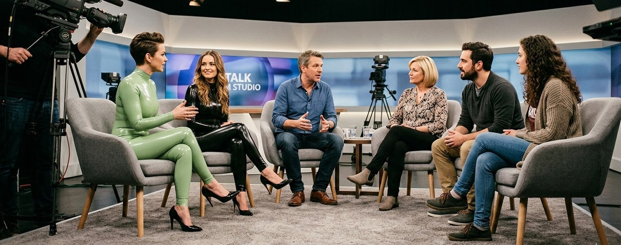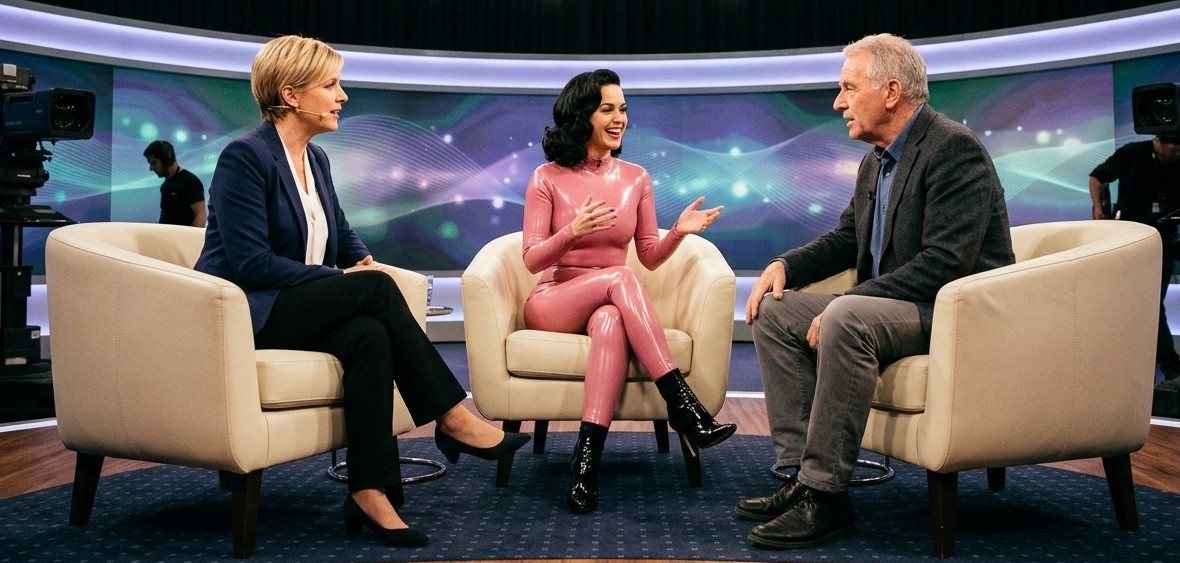„Markus, ich bin eine offen lesbische Frau. Ich trage dieses Outfit nicht, um eine Latexnacht im Privatsender zu moderieren. Ich trage es, weil es meine zweite Haut ist. Weil ich mich damit authentisch fühle. Und weil die Nachrichten heute ohnehin düster sind – da kann doch wenigstens ich glänzen.“