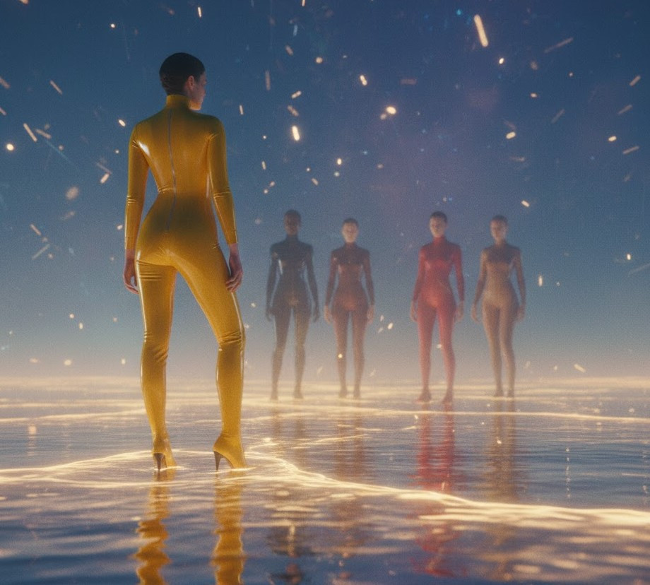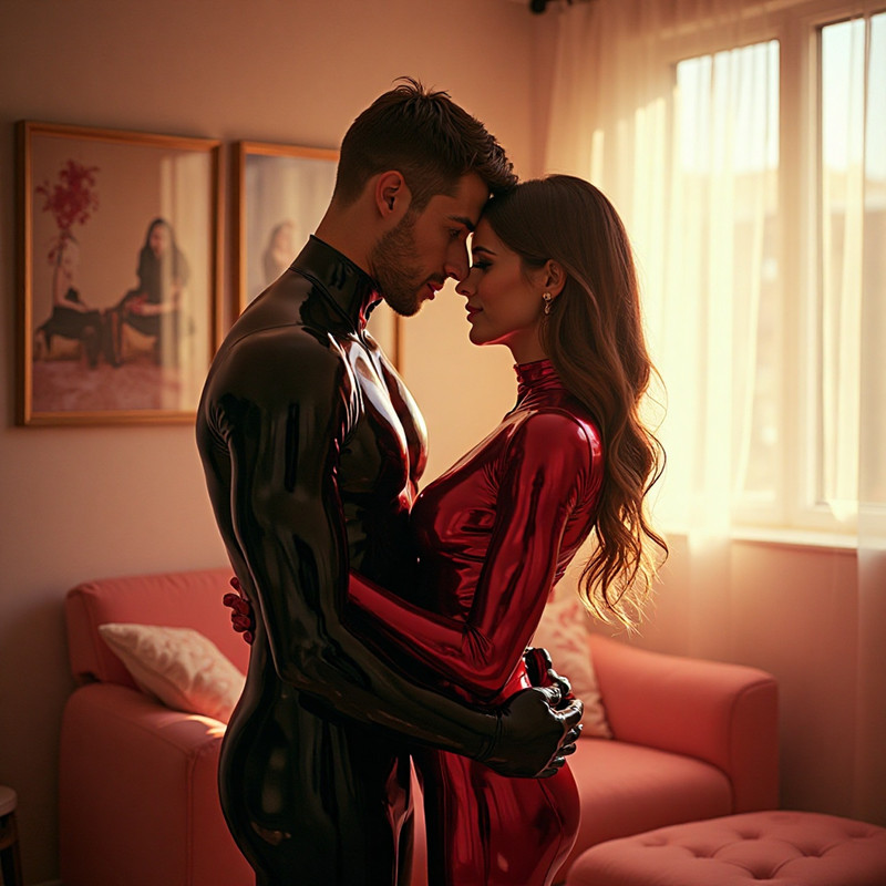 Als sie aufstehen, liegt eine Ahnung in der Luft. Keine Angst. Kein Druck. Nur das leise Wissen, dass etwas Großes vor ihnen liegt – und dass sie bereit sind. Gemeinsam. Glänzend. Im Latexbewusstsein.