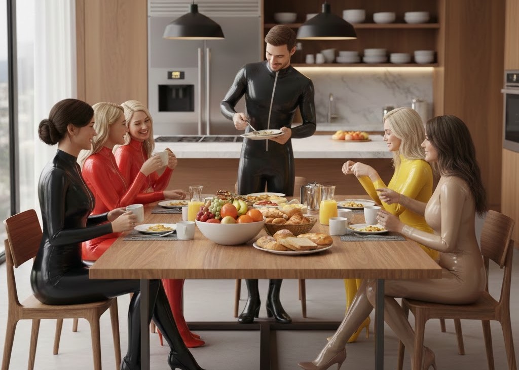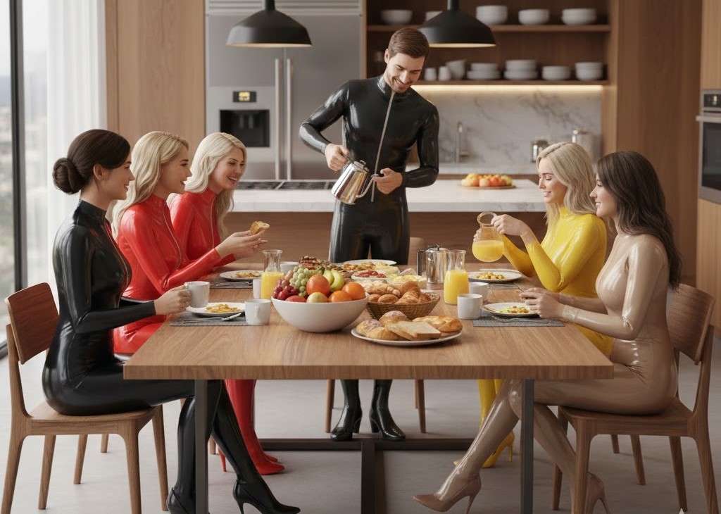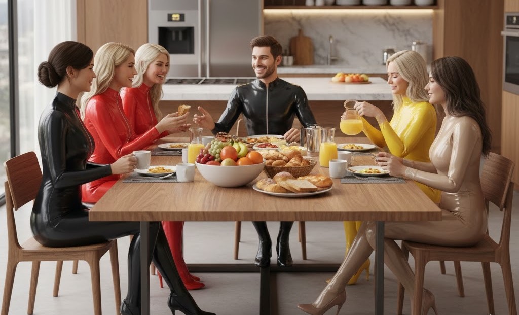 Am Ende nicken alle. Es braucht keine Abstimmung. Der Begriff steht im Raum wie etwas, das schon immer da war und nur benannt werden wollte. Sie einigen sich darauf, ihn zu verwenden, ihn zu schützen und ihn behutsam in die Welt zu tragen. Nicht als Erklärung für alles, sondern als Einladung. Und während sie weiter frühstücken, glänzt das Latex nicht stärker als zuvor – aber es wirkt ruhiger, als hätte es seinen Namen gefunden.