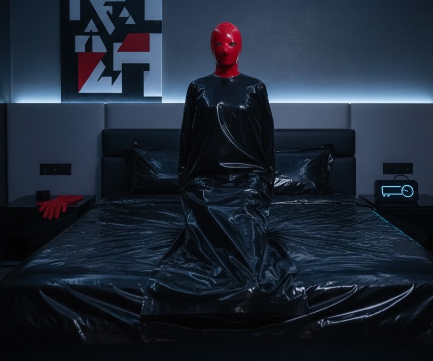 „Ich werde ab jetzt so schlafen. In Latex, mit Catsuit, Maske, Handschuhen. Nicht, um etwas zu verstärken – sondern um nichts mehr zu verlieren. Diese Ruhe. Diese Nähe zu mir selbst.“